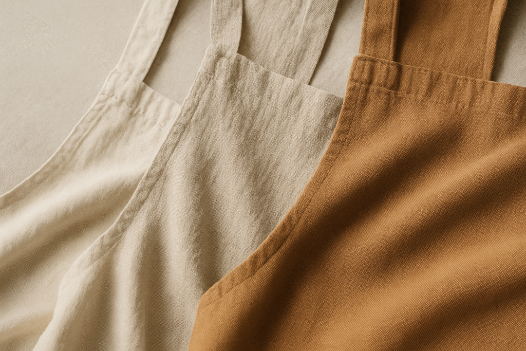 The fabric you choose will determine the durability, comfort, and look of your apron. Natural fabrics like cotton, linen, and canvas are not only breathable and comfortable but also environmentally friendly. Cotton aprons are perfect for light cooking, while canvas is a great choice for tougher tasks like pottery or gardening. Linen is a fantastic option for those who want something light and airy, perfect for summer months.